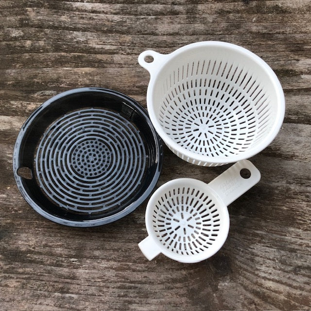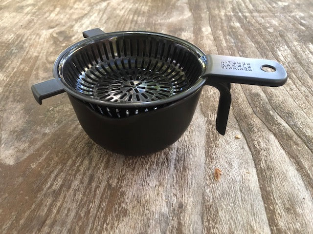 Once your kefir is ready for straining simply place the strainer over a small bowl and pour your kefir into the strainer. The kefir grains will remain in the strainer and can then be used to make your next batch.
