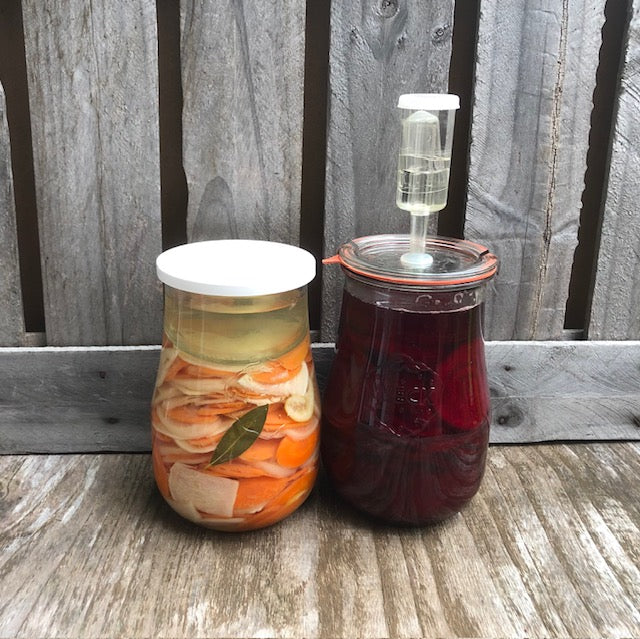 Preserve your food the natural way with this stylish German made Fermenting Jar. Fermenting food is the oldest form of preserving with the technique being in use for over 4000 years! Yes you can make Pickles, Kimchi and Sauerkraut, and that is just the start. Ferment all your veggies and fruits into delicious foods which are much better for your health!